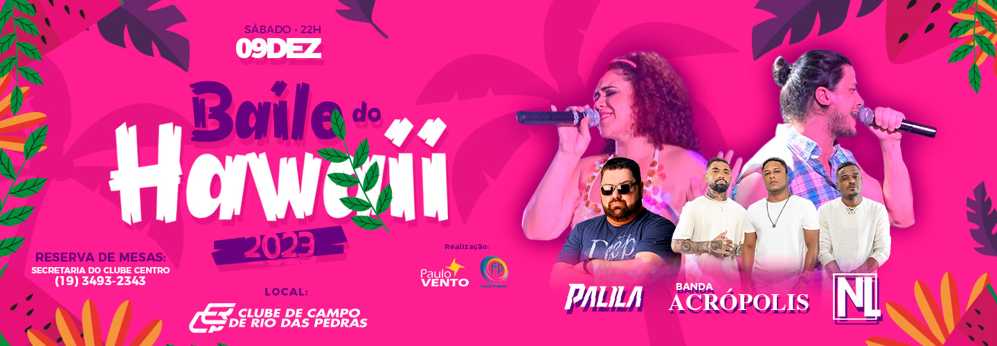 Um dos maiores bailes da região está de volta... Baile do Hawaii 2023 nas Piscinas do Clube de Campo de Rio das Pedras.