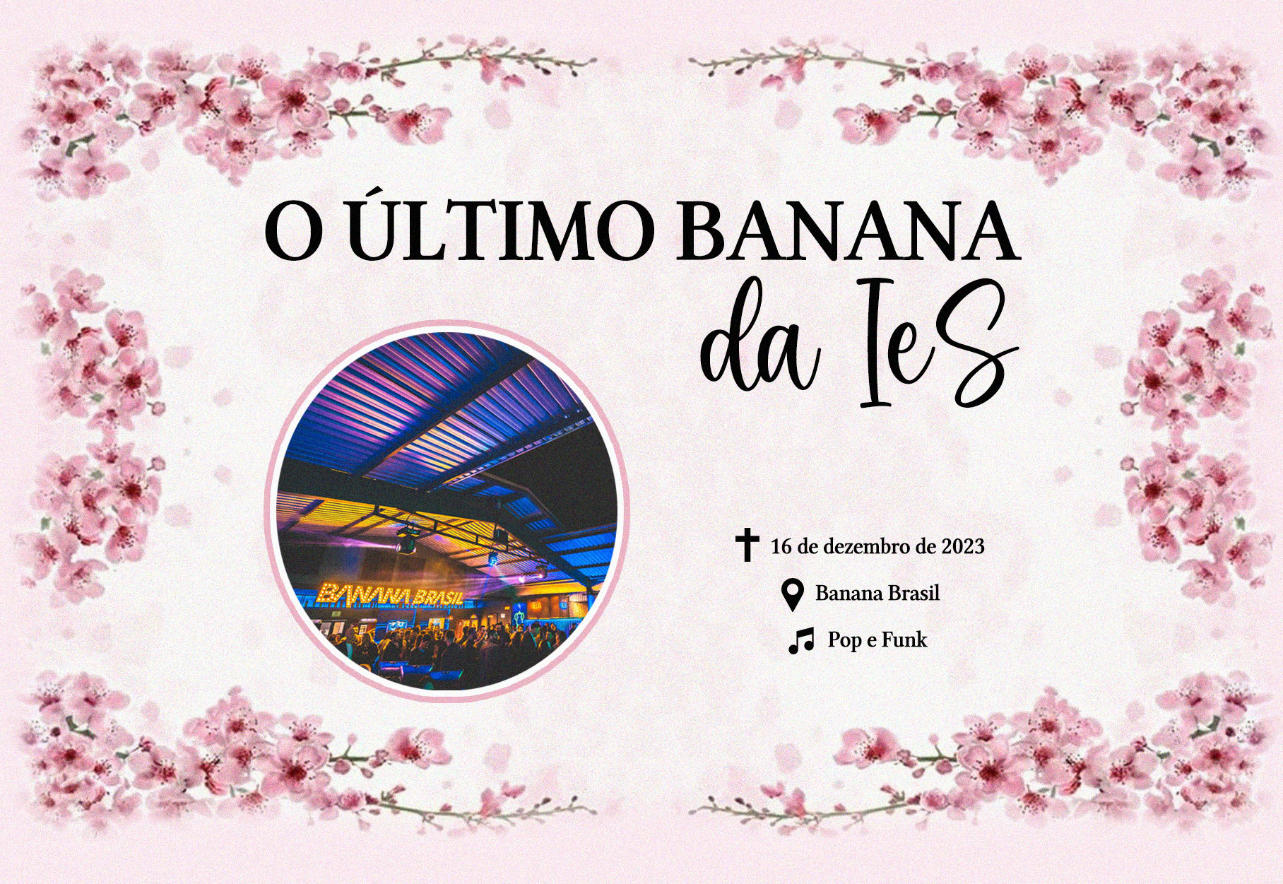 Descanse em paz, Banany! No dia 16 de dezembro, nos reuniremos pela última vez para dançar, festejar e praticar muitas libertinagens nesta balada que nos abriu as portas e proporcionou tantos momentos icônicos no cotidiano são carlense. 🍌💛