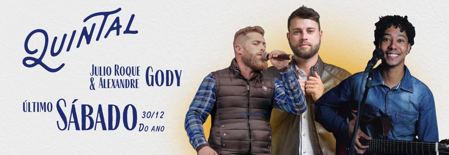 Sábado dia 30/12 a partir das 18:00 horas Quintal apresenta Julio Roque & Alexandre e Gody na melhor varanda de São João da Boa Vista.
