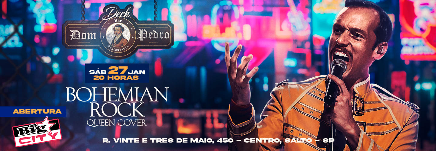 Abrindo o evento, a banda BIG CITY, promete agitar o público com grandes hits do POP, ROCK, FLASHBACK, com uma irreverência e talento de primeira, aquecendo os motores para a grande atração da noite, a BOHEMIAN ROCK.