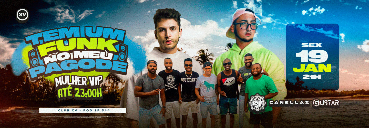 Venha se contagiar na festa com os beats envolventes do DJ Gustar, a energia contagiante do queridinho da galera, DJ Canellaz, e mergulhe no melhor do samba regional com Samba SJ. Uma noite Ășnica de mĂșsica e diversĂŁo aguarda por vocĂȘ!