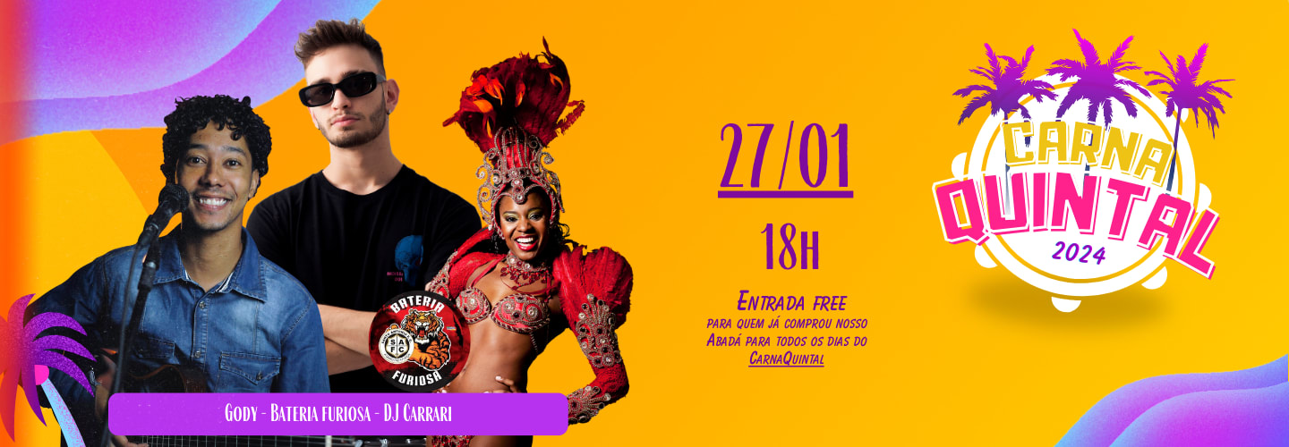 E não poderia faltar na melhor varanda de São João da Boa Vista nosso pré carnaval, sábado dia 27/01 contaremos com Gody e banda, Escola de samba Bateria Furiosa e DJ Carrari pela primeira vez no Quintal!