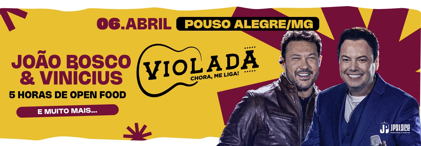 A festa oficial da dupla João Bosco & Vinicius chega a Pouso Alegre/MG para proporcionar uma inesquecível experiência gastronômica para toda a família. Prepare-se para conhecer a Violada, Chora Me Liga, a união entre gastronomia e música sertaneja para todas as idades.