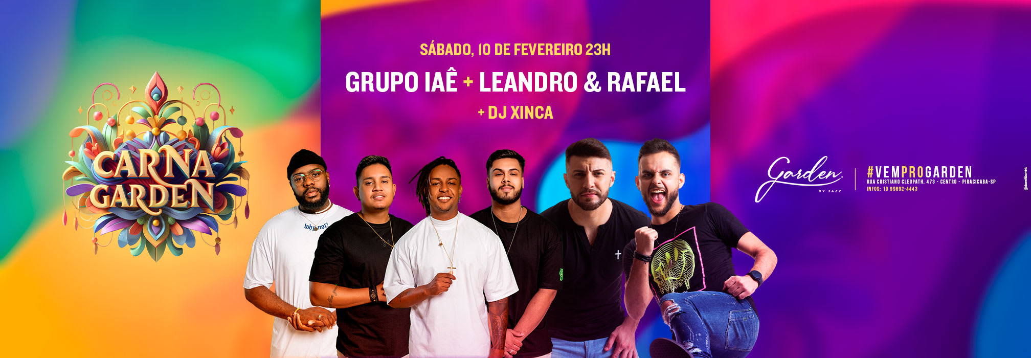 CarnaGarden - Sábado - Leandro & Rafael + Grupo IAÊ + DJ Xinca
