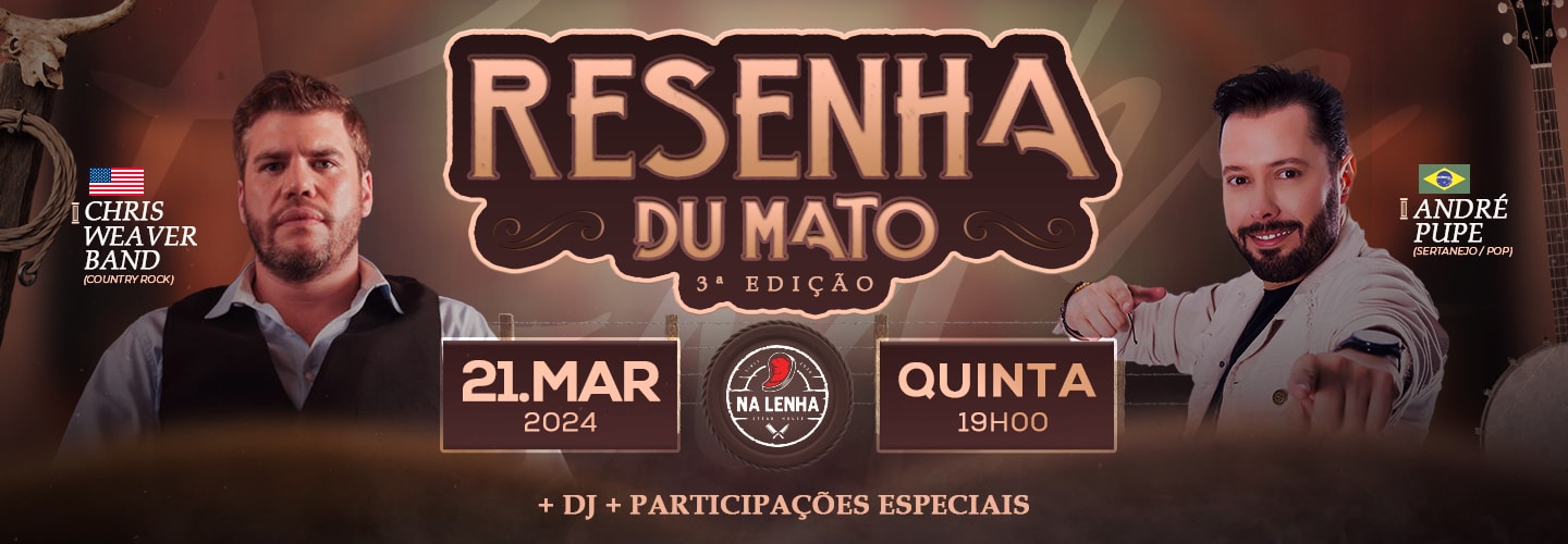 Nossa 3ª edição do Resenha do Mato, conta com Chris Weaver diretamente de Nashiville, André Puppe e convidados especiais!!! Vamos ter muita música, carne boa e gente bonita!