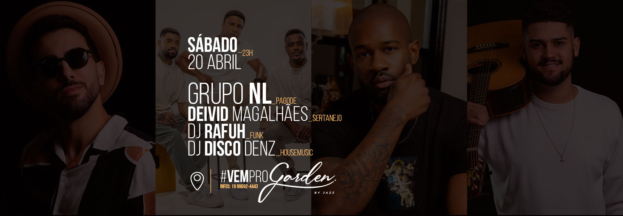 Sábado Garden com NL + Deivid Magalhães + Rafuh + Disco Denz