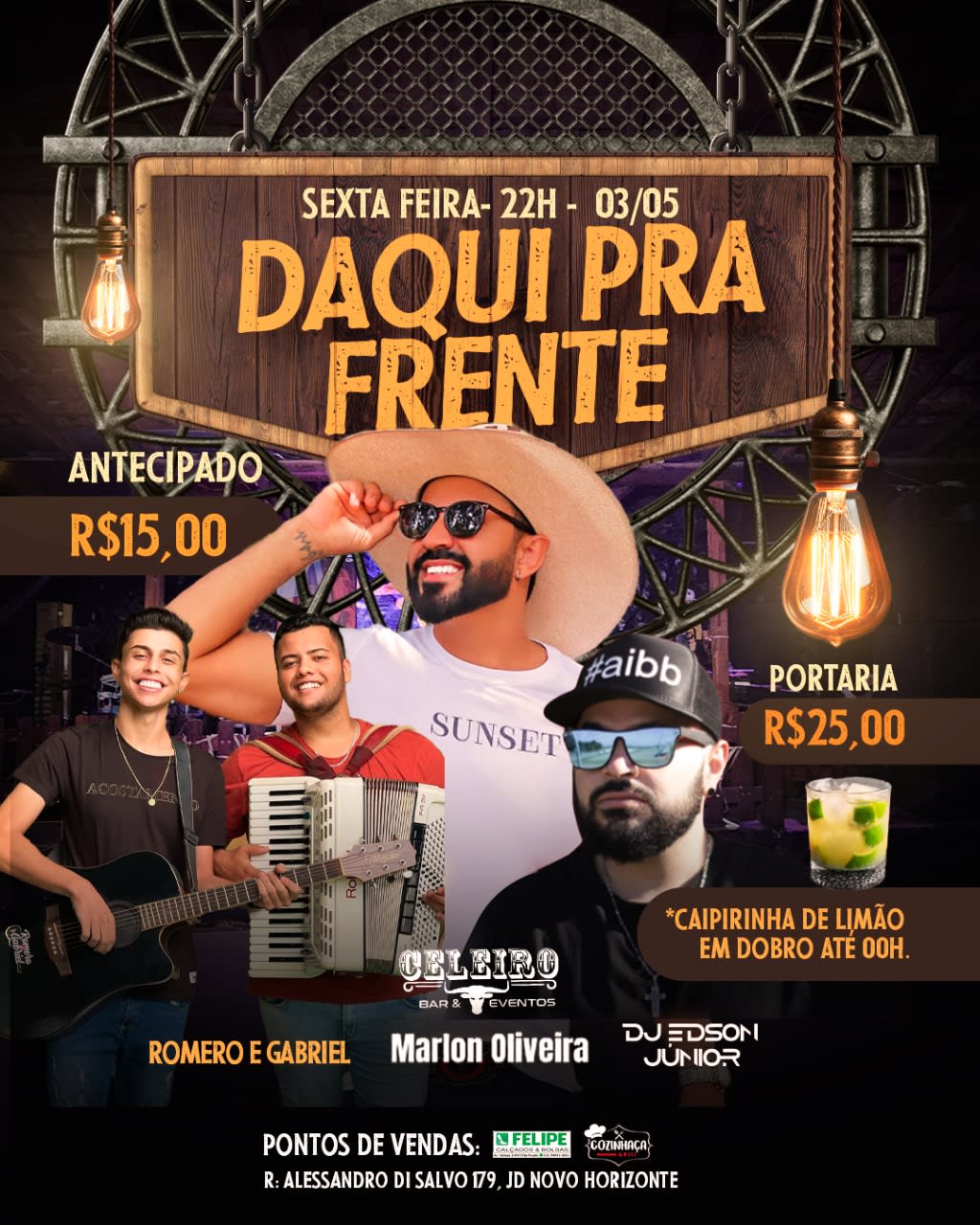 Sexta, dia 03, a noite promete com o melhor do sertanejo aqui no Celeiro. Seja com os amigos ou com o crush o seu rolê tá garantido!