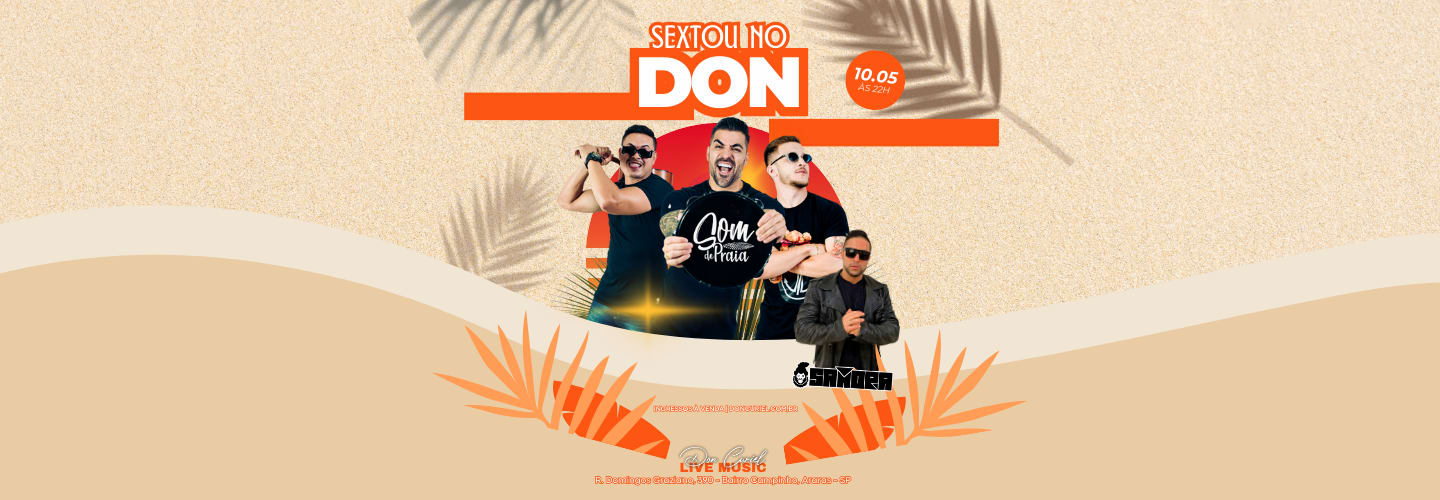 E nada melhor que curtir essa noite com muita animação ao som da banda Som de Praia no Don Curiel Live Music. Pra completar a nossa noite, DJ Samora trás o melhor da música eletrônica em seu repertorio.