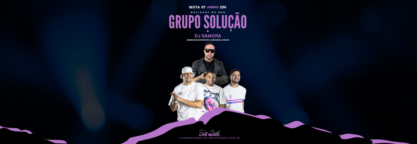 Sexta-feira é dia de ESTREIA no palco do Don Curiel Live Music. O Grupo Solução vem animar o Don com muito Pagode, enquanto o DJ Samora apresenta em seu repertório o melhor da musica eletrônica.