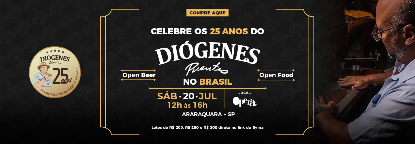 Evento em celebração aos 25 anos do mestre charuteiro Diógenes Puentes no Brasil. Realizado na Cervejaria Ópera, em Araraquara (SP), o evento terá música ao vivo, comida de boteco e degustação de cerveja. Com início ao meio dia e término às 16h, o evento será destinado a donos de tabacaria, distribuidoras e apaixonados por charuto.