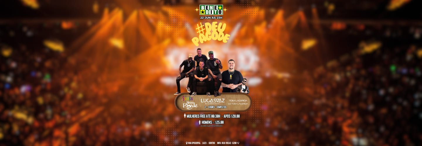 SABADO DIA 22 DE JUNHO #DEUPAGODE COM: GRUPO TURMA DO SAMBA DIRETAMENTE DE ARARAQUARA , E O NOSSO GORDINHO QUERIDO PAGODE DO LUKINHA, EM 2 SHOWS COMPLETOS . E O DJ TOM LACERDA TOCANDO AS MELHORES .