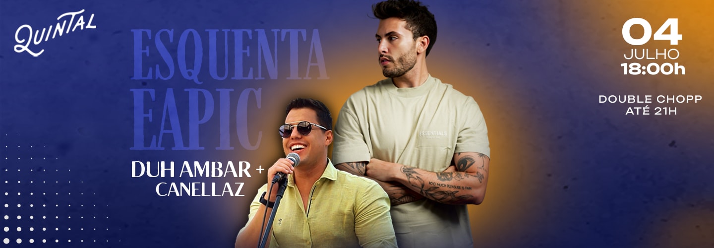 Quinta feira dia 04 de julho a partir das 18:00 Quintal apresenta Esquenta da Eapic com Duh Ambar e DJ Canellaz.