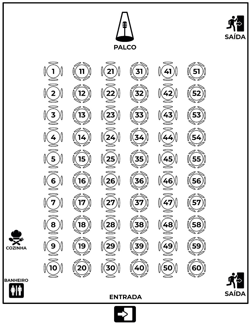 Mesa com 6 lugares: R$360,00 + taxa (mesa reservada conforme mapa)