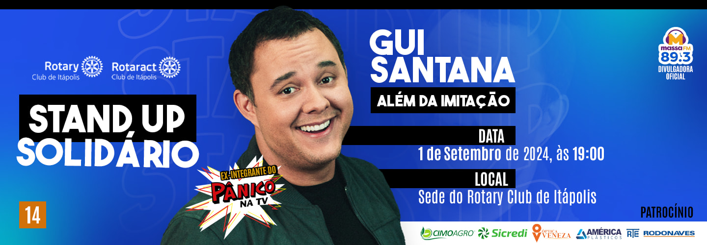 O Rotary Club de Itápolis e o Rotaract convidam você para o STAND UP SOLIDÁRIO com o GUI SANTANA - ALÉM DA IMITAÇÃO 😃