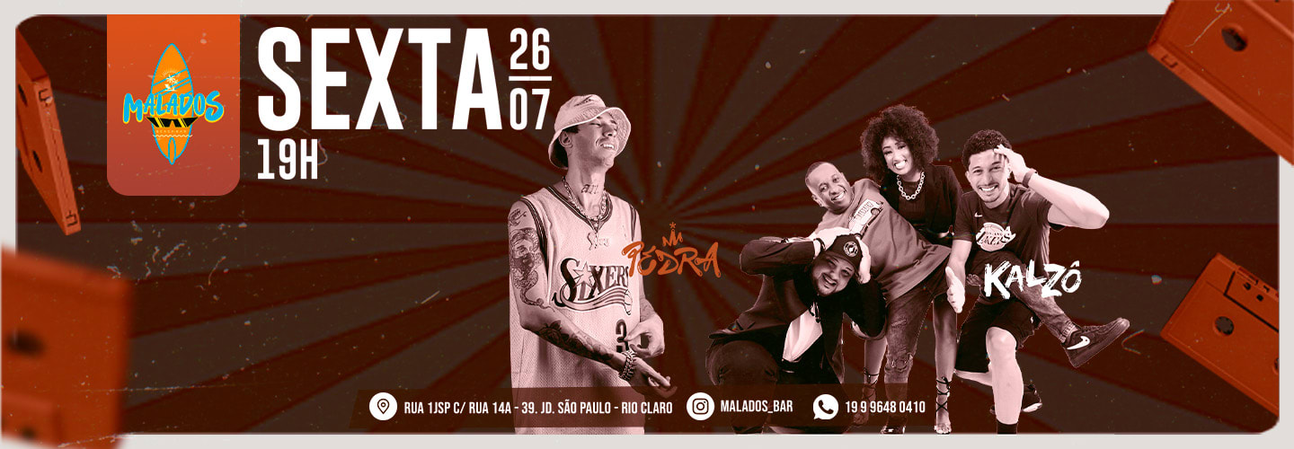 Sextou no Malados e nada melhor que aquecer para o final de semana com Grupo Kalzô e DJ Pedra!