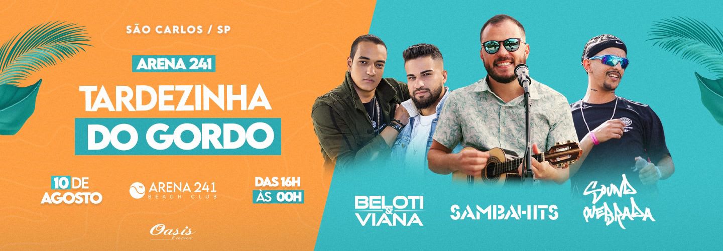 No Sábado dia 10/08/2024 acontecerá um evento para você não se esquecer na Arena 241, com o melhor do Sertanejo, Pagode e Funk da cidade, a Tardezinha do Gordo promete um dia de muita diversão, não fique de fora!