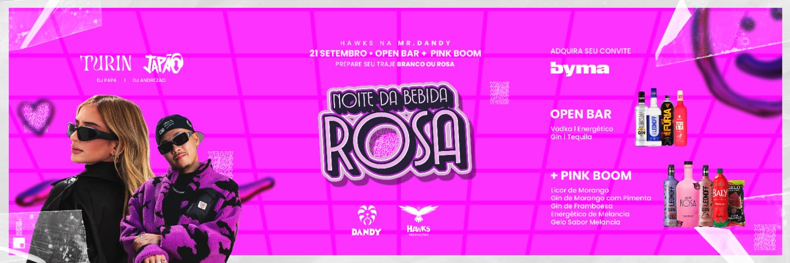 🦅 Um super OPEN BAR com o padrão Hawks de qualidade com direito a Vodka, energético, gin e tequila + PINK BOOM 💥