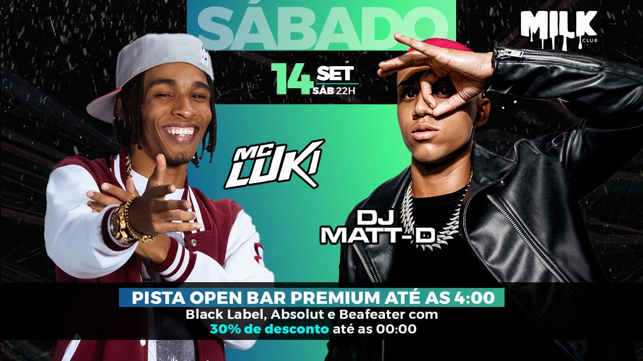 DJ MATT D e MC LUKI na Milk Club (SÁBADO)