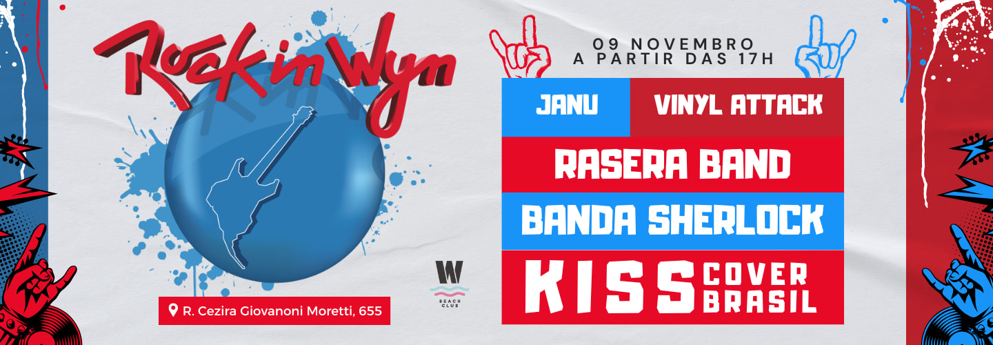 No dia 09/11 a partir das 17h acontecerá o ROCK IN WYN 2024 🤟, com os shows KISS Cover Brazil, Banda SHERLOCK, RASERA BAND, JANU e VINYL ATTACK!