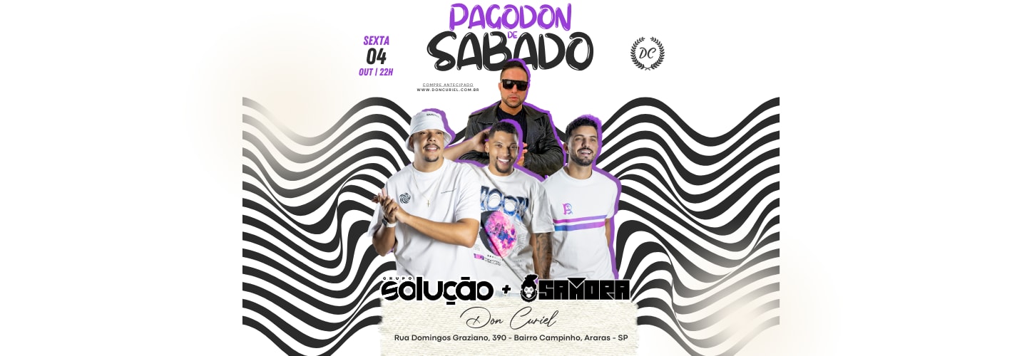 O Grupo Solução vem animar o Don com muito Pagode, enquanto o DJ Samora apresenta em seu repertório o melhor da musica eletrônica.