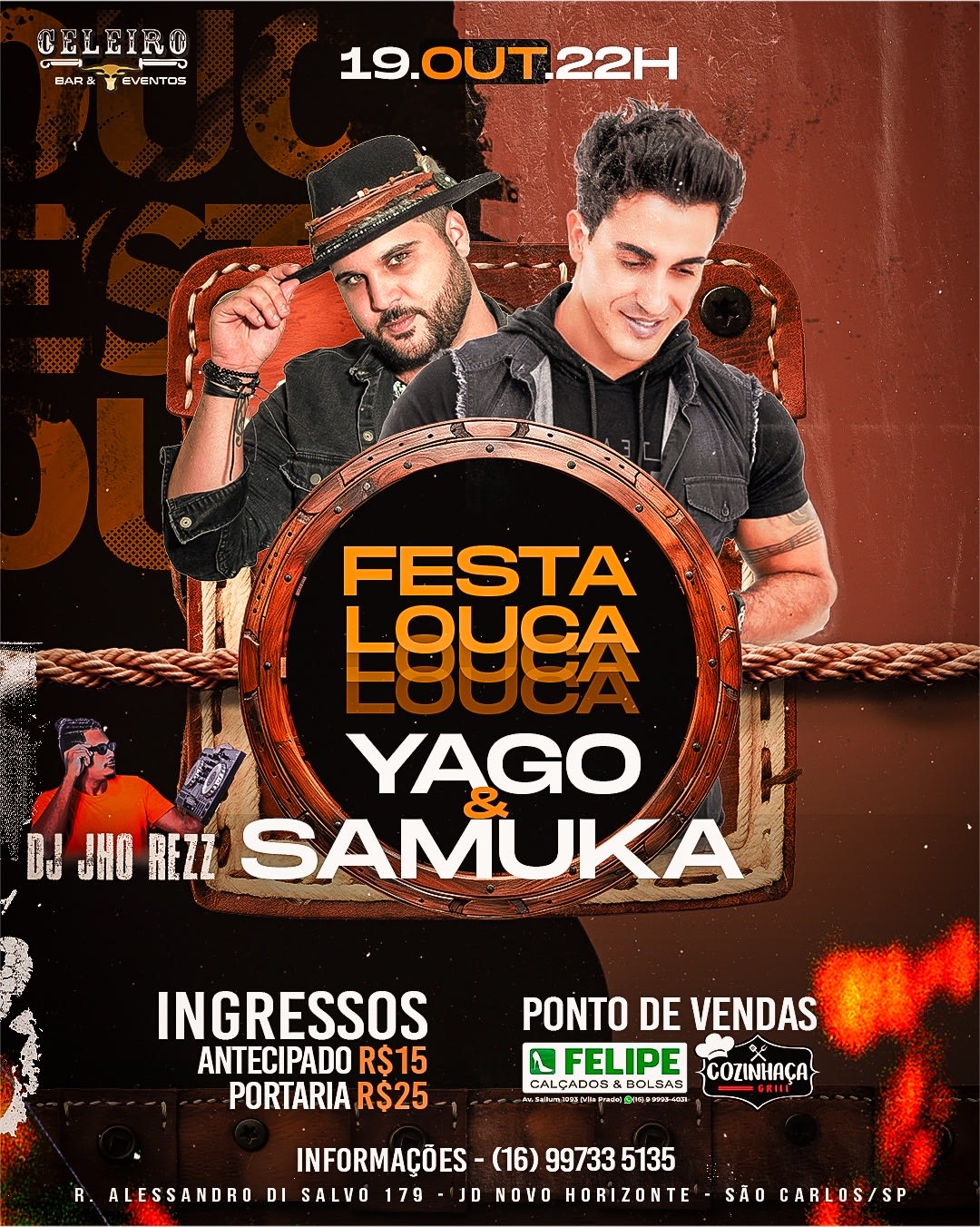 🎟️ Convites antecipados R$ 15,00 e na portaria R$ 25,00