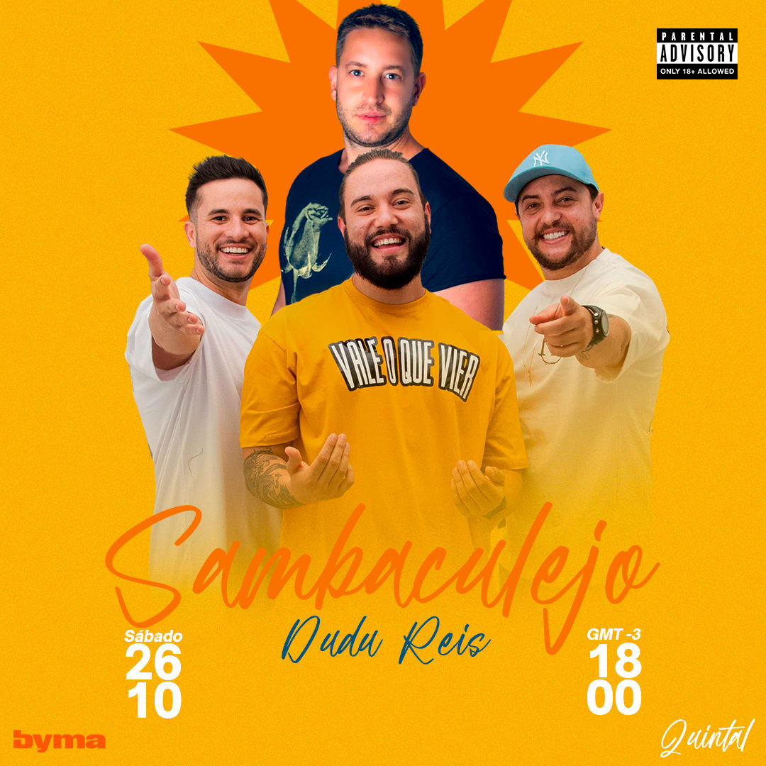 Teremos o grupo Sambaculejo, com muita música boa pra animar nosso sábado, e claro, pra encerrar a noite com grande estilo, Dudu Reis.