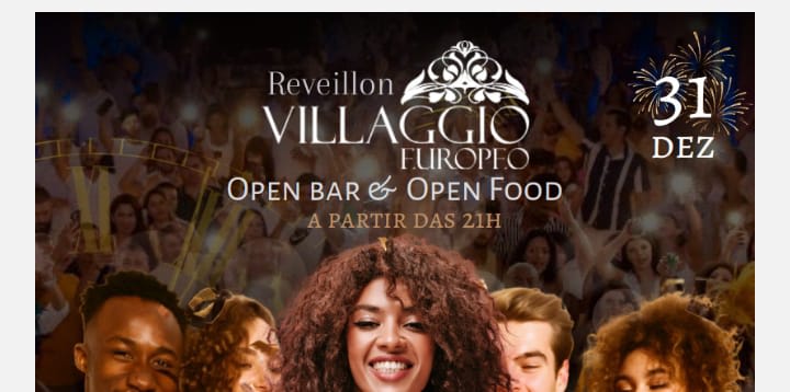 🎉✨ Vem aí o Réveillon mais incrível de SP! 🎉✨ Prepare-se para começar 2025 com muita alegria, glamour e um open bar/open food de dar água na boca no Villaggio Europeo!🍽️ Menu de deixar qualquer um com água na boca:• Entradas: Ilha de antepastos, pastas deliciosas e petiscos incríveis!• Jantar: Arroz branco com amêndoas, penne al limone, lombo assado ao barbecue, e muito mais!• Sobremesas: Ilha de sorvetes com sabores irresistíveis - chocolate, morango e pistache.🍹 Open Bar Premium com drinks maravilhosos:• Caipirinha gourmet de sabores exóticos 🌱🍓• Mojito refrescante 🌿🍋• Gin Tropical 🥂• Sensação, Amor Perfeito e muito mais!