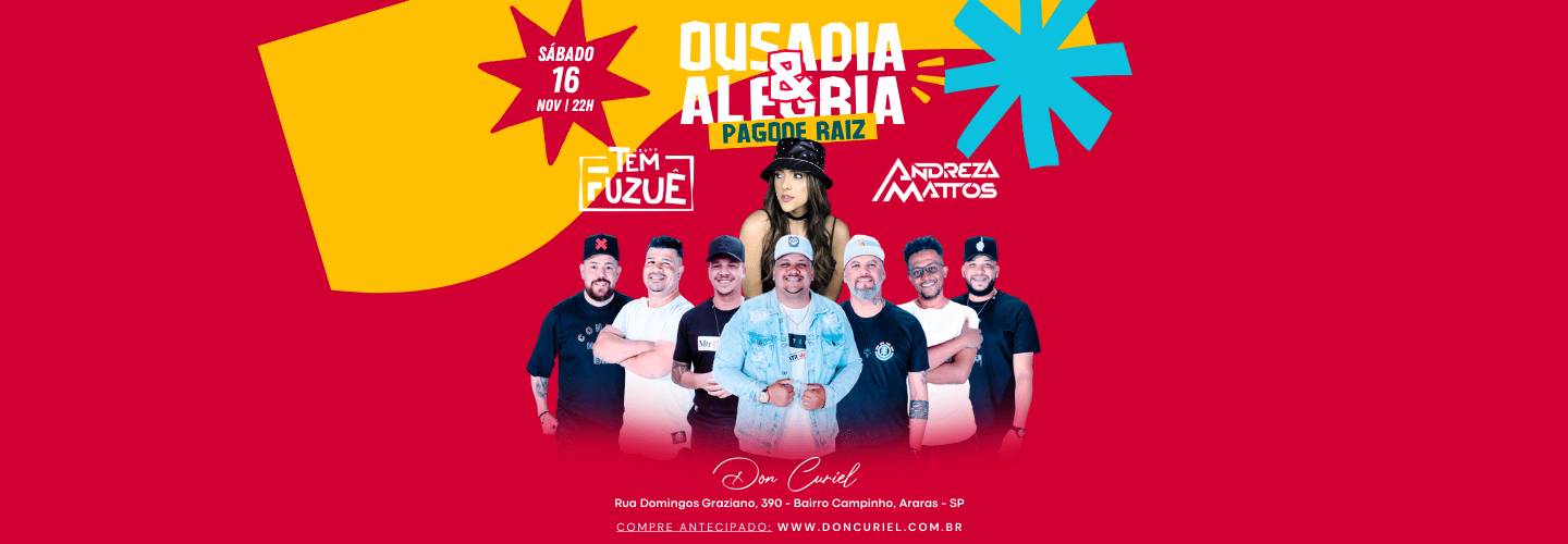 Sábado é dia de Pagode no palco do Don Curiel Live Music. A festa fica por conta da Banda Tem Fuzuê + DJ Andreza Mattos.