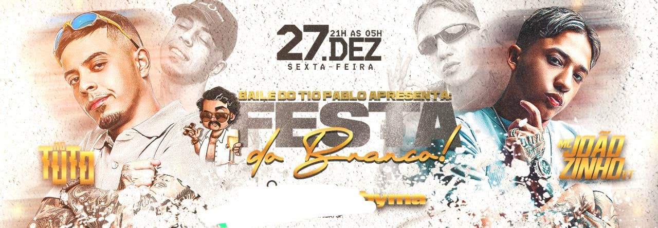 Prepare-se para uma noite inesquecível! No dia *27/12*, o Baile do Tio Pablo apresenta a *Festa do Branco*, um evento especial para celebrar em grande estilo com o clima de réveillon. Vista seu traje branco e venha curtir com a gente essa noite única, repleta de energia, música e diversão!