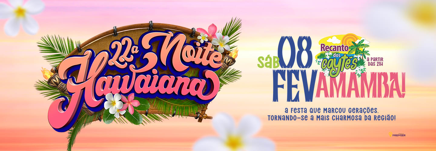 Estamos de volta! O Recanto dos Caytés de Amambai-MS apresenta: 22° Noite Hawaiana. É o tradicional baile do Hawaí de Amambai. Salve essa data: 8 de Fevereiro de 2025.