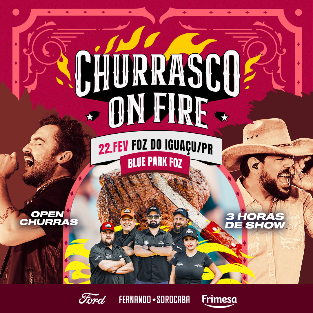 Prepare-se para viver o Churrasco On Fire, um encontro onde a alegria, a boa música e o verdadeiro churrasco se fundem para criar lembranças que ficarão para sempre em sua memória. Nos encontramos lá!