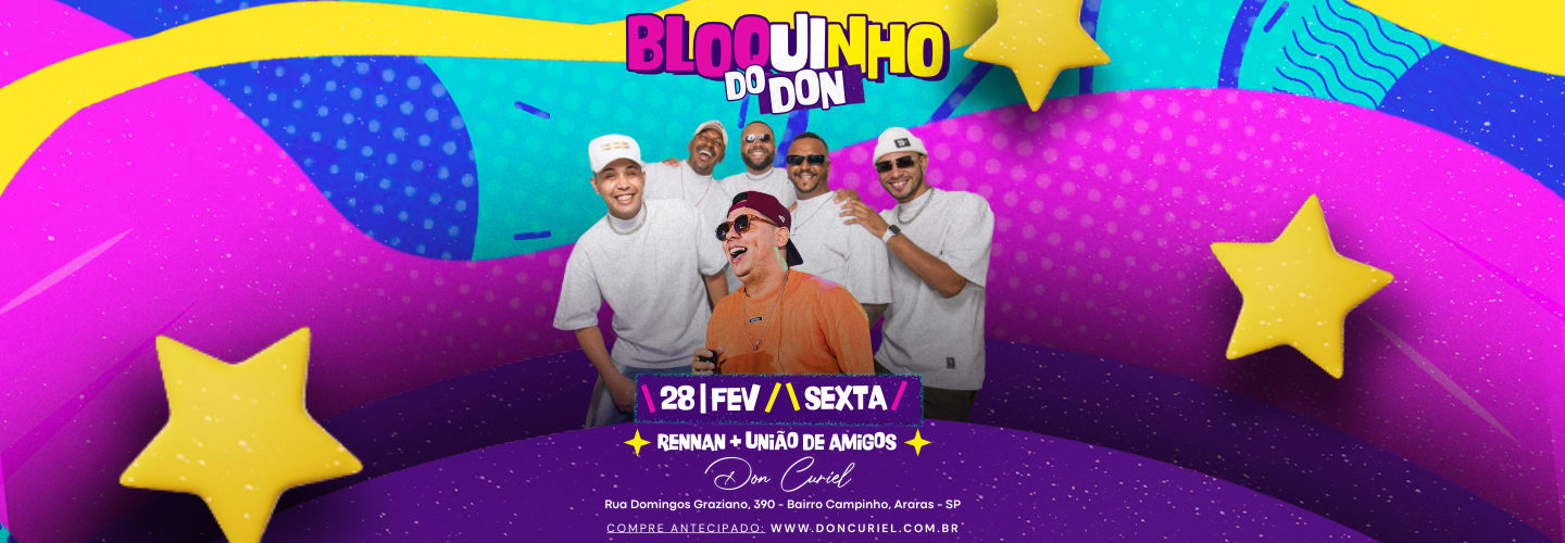 Dia 28 começa mais uma edição do CarnaDon. Quem vem fazer a animação do nosso bloquinho são eles, Rennan e o grupo União de Amigos.
