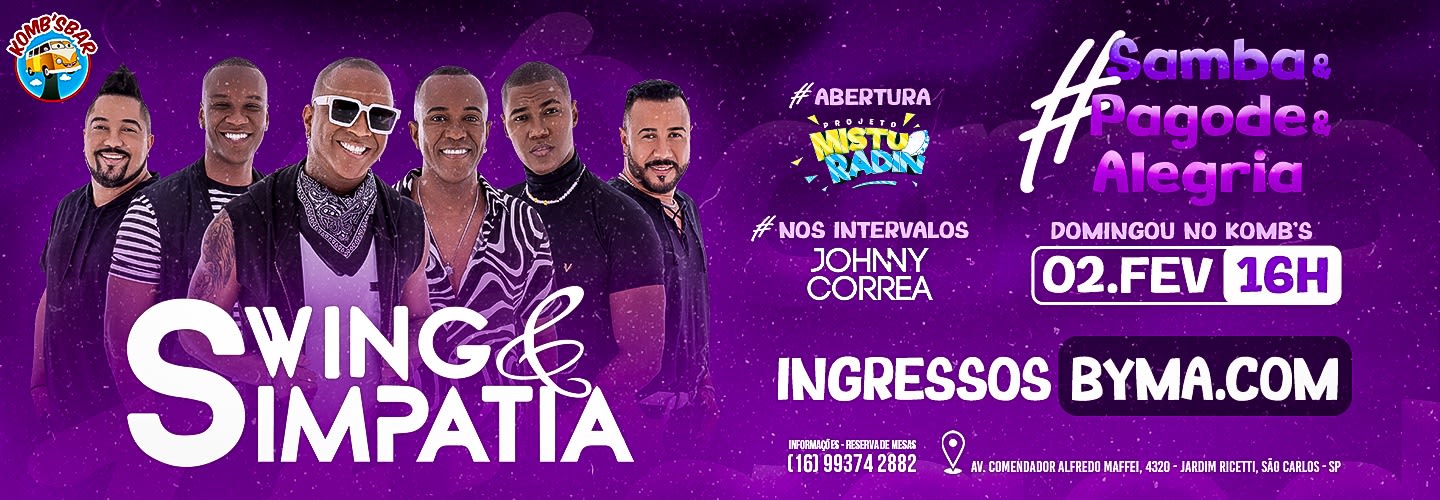 DIA 02 Fevereiro grande evento com Grupo SWING Simpatia diretamente do RJ relembrando grandes sucessos pagode90 e com várias participações