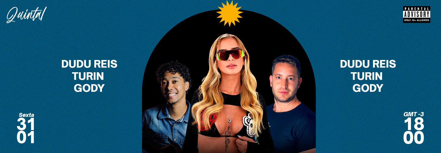 Gody, com o melhor do pagode agitando a casa. Logo depois agitando a galera com o funk, Dj Turin. E finalizando a noite com chave de ouro Dudu Reis com o eletrofunk.