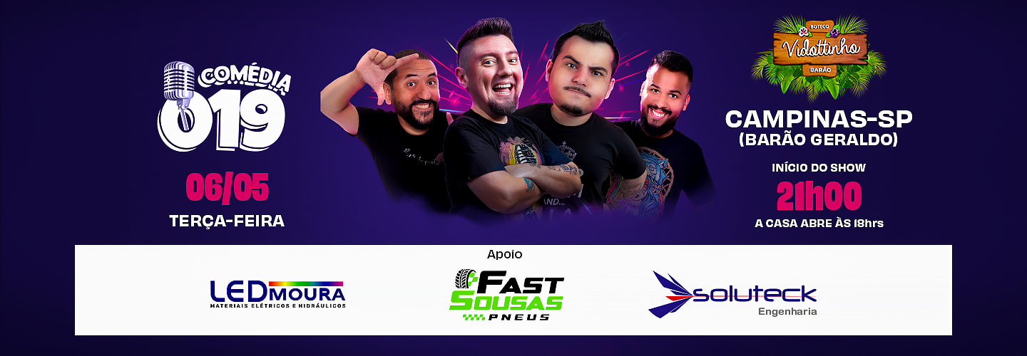O melhor show de stand up de Campinas vem com tudo no mês de Maio! Luiz Paixão e Zé Neves comandam mais uma noite de humor no Vidottinho Barão Geraldo e recebem dois grandes amigos de Sorocaba: João Valio e Valdeci Proença! Era pra ser o prefeito Tik Toker, mas a verba não foi suficiente. Avisa a galera e partiu Vidottinho porque o show é engraçado demais!