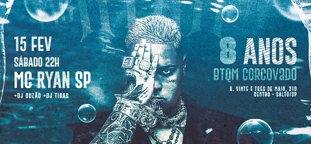 O maior club do interior paulista comemora 8 anos em grande estilo! Para essa edição histórica, RYAN SP chega com seu show de turnê, trazendo uma experiência inédita ao Botequim do Corcovado.