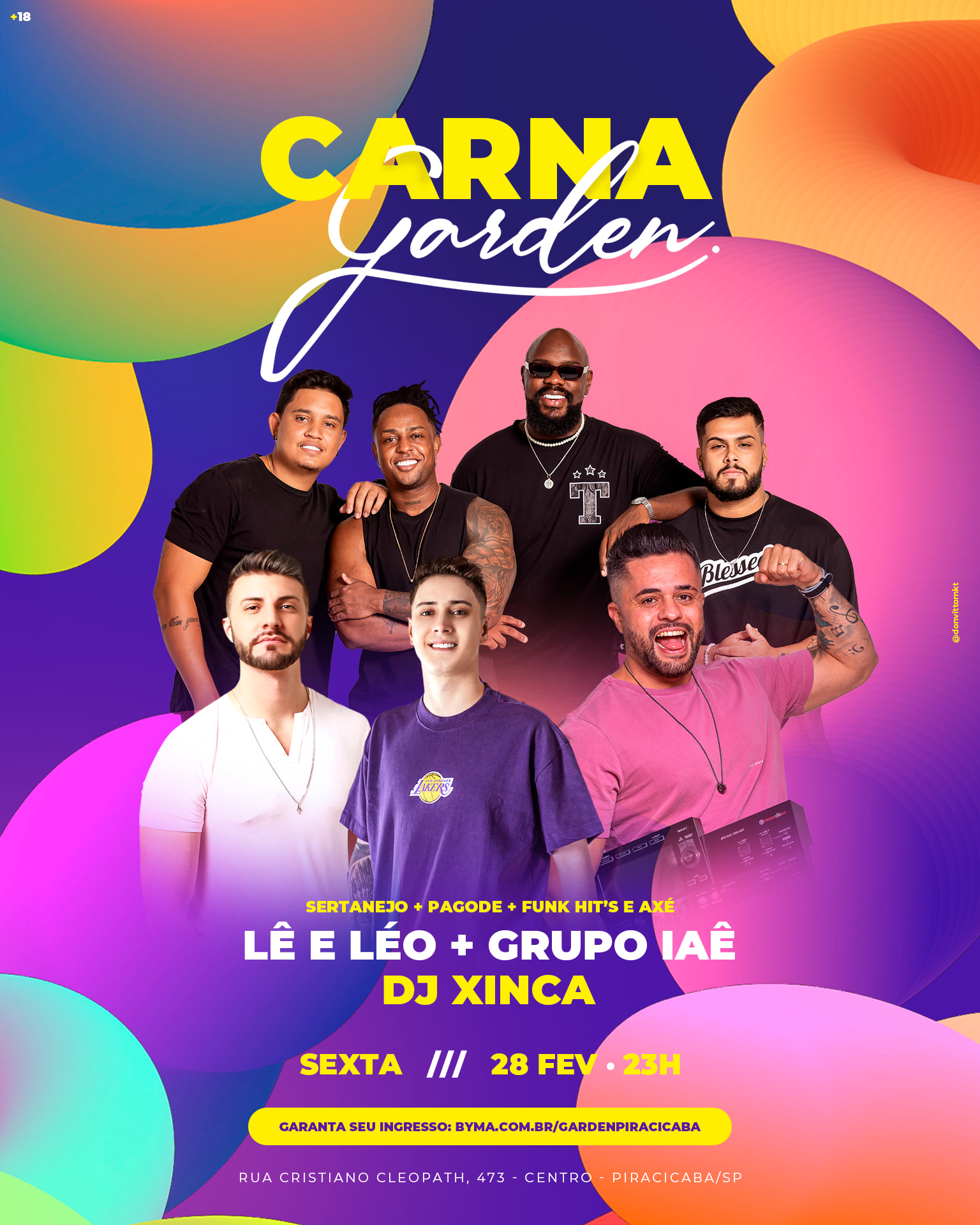 SEXTA - CarnaGarden com Le e Léo + Grupo IAE + Dj Xinca