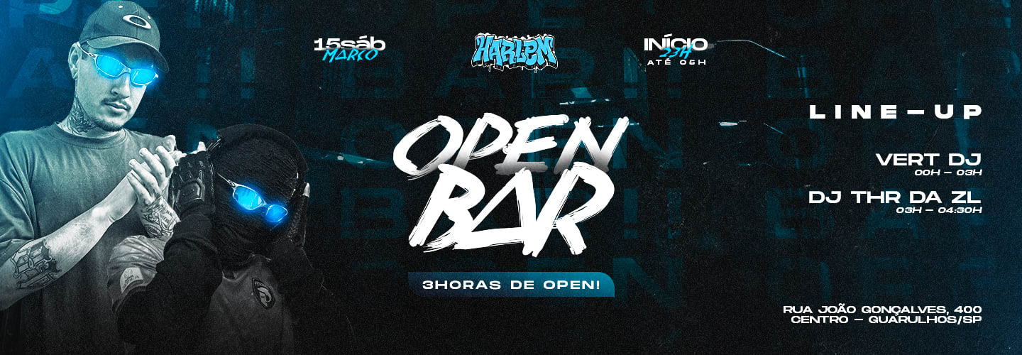 Primeira edição do ano OPEN BAR no HARLEM CLUB, trazendo novidades no open e com um LINEUP de respeito!