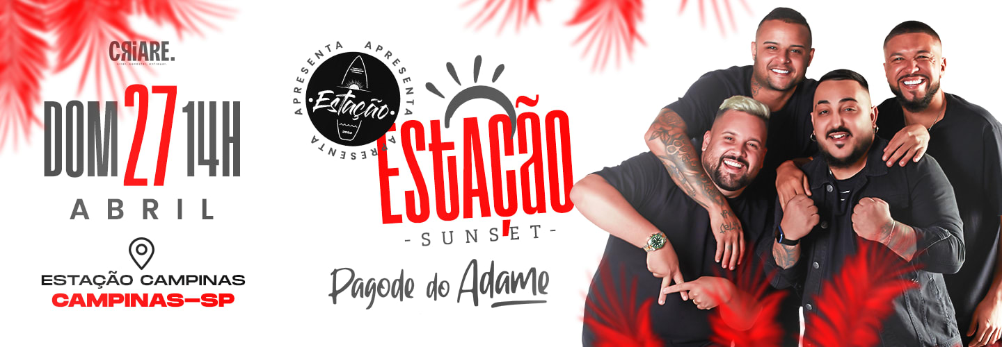 🌅✨ O Estação Sunset está chegando no Estação Campinas no dia 27 de abril e promete uma tarde inesquecível! 🎶🔥 Prepare-se para curtir o show do Grupo Pagode do Adame, o fenômeno da internet l! 🙌💥