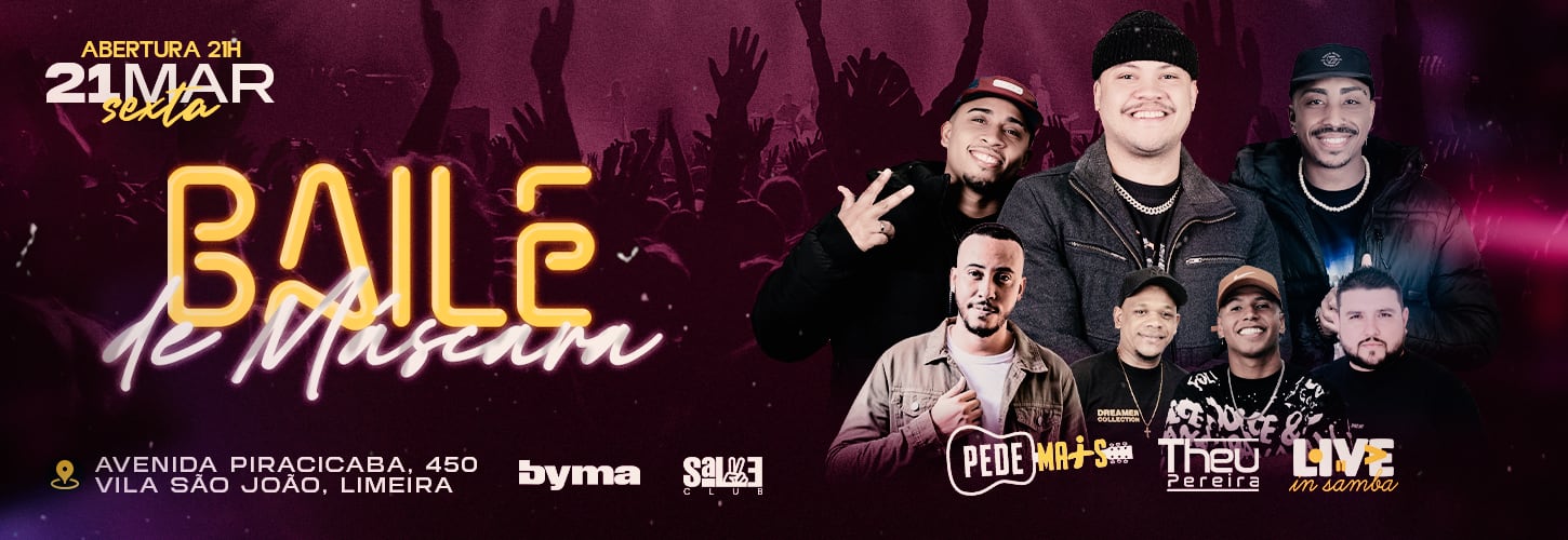 O BAILE DE MÁSCARA da Salve Club promete entrar pra história! Pela primeira vez em Limeira, um evento exclusivo com atrações de peso pra fazer essa noite ser inesquecível!
