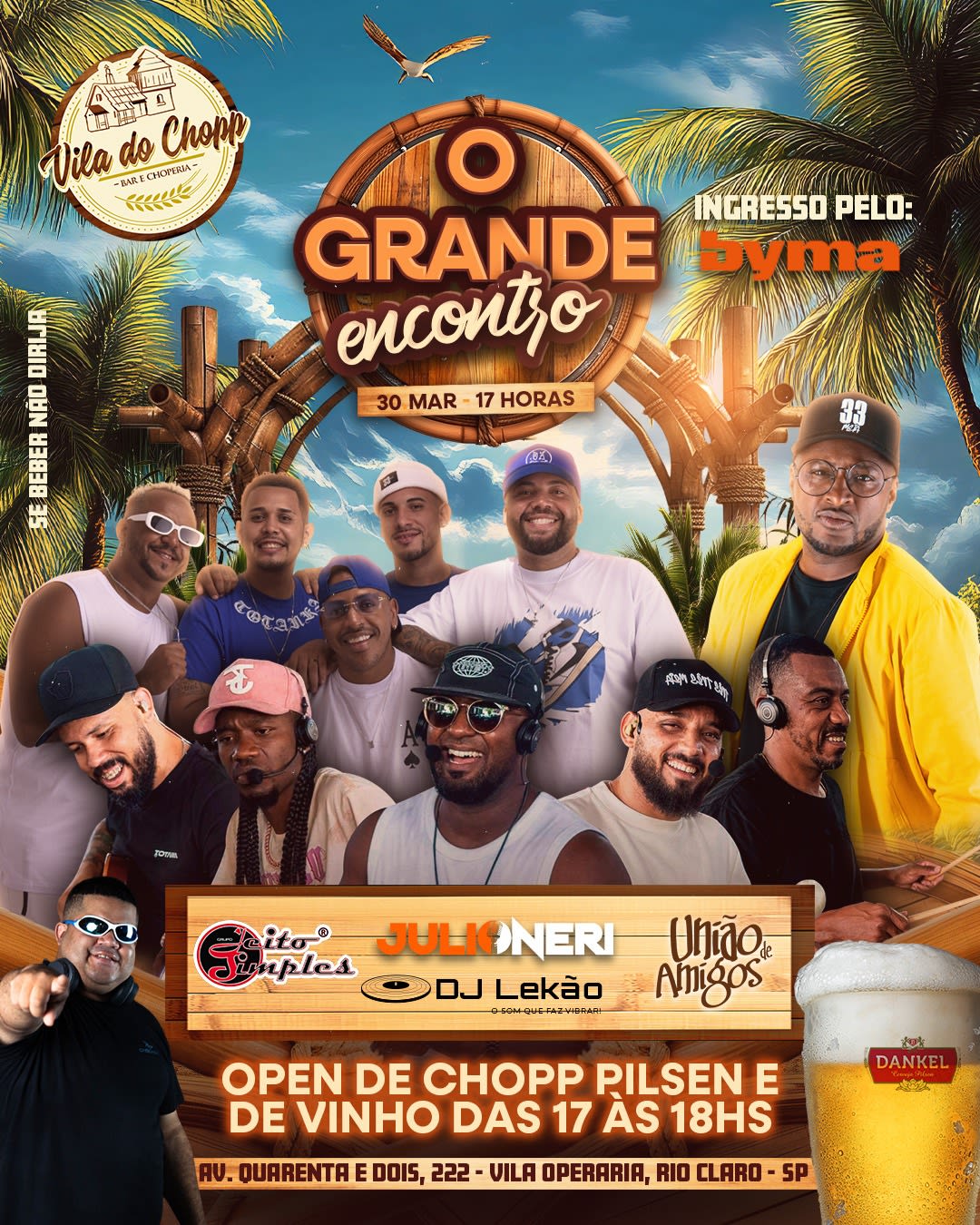 Uma das maiores rodas de Samba de Rio Claro, está de volta!! Grande encontro, com 1 hora de Open Bar de Chopp e chopp de vinho!!