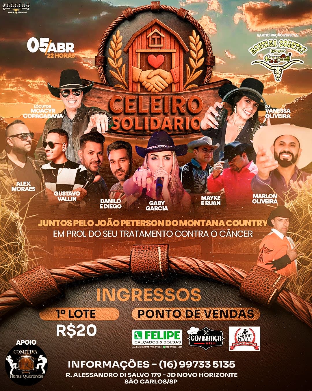 #CeleiroSolidário #TodosPeloJoão #FestaDoBem #AjudeComAmor #SãoCarlosSP #MúsicaComPropósito #EventoSolidário