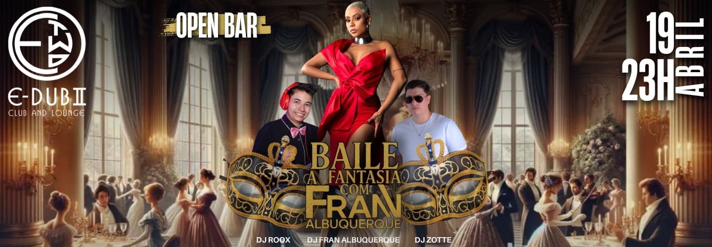 Dia 19 de abril, a partir das 23h, rola o imperdível Baile à Fantasia com Fran Albuquerque, em uma edição OPEN BAR daquelas que fazem história!