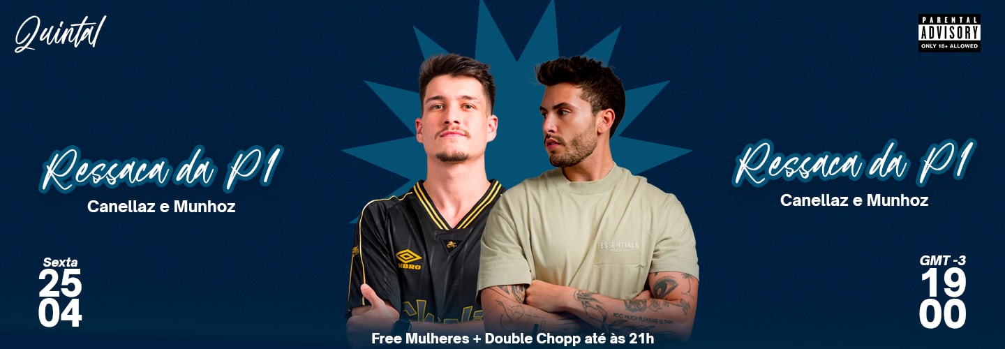 Sexta-feira é dia de esquecer a P1 e viver o momento com Dj Munhoz e Dj Canellaz, com muito funk botando o Quintal pra ferver.