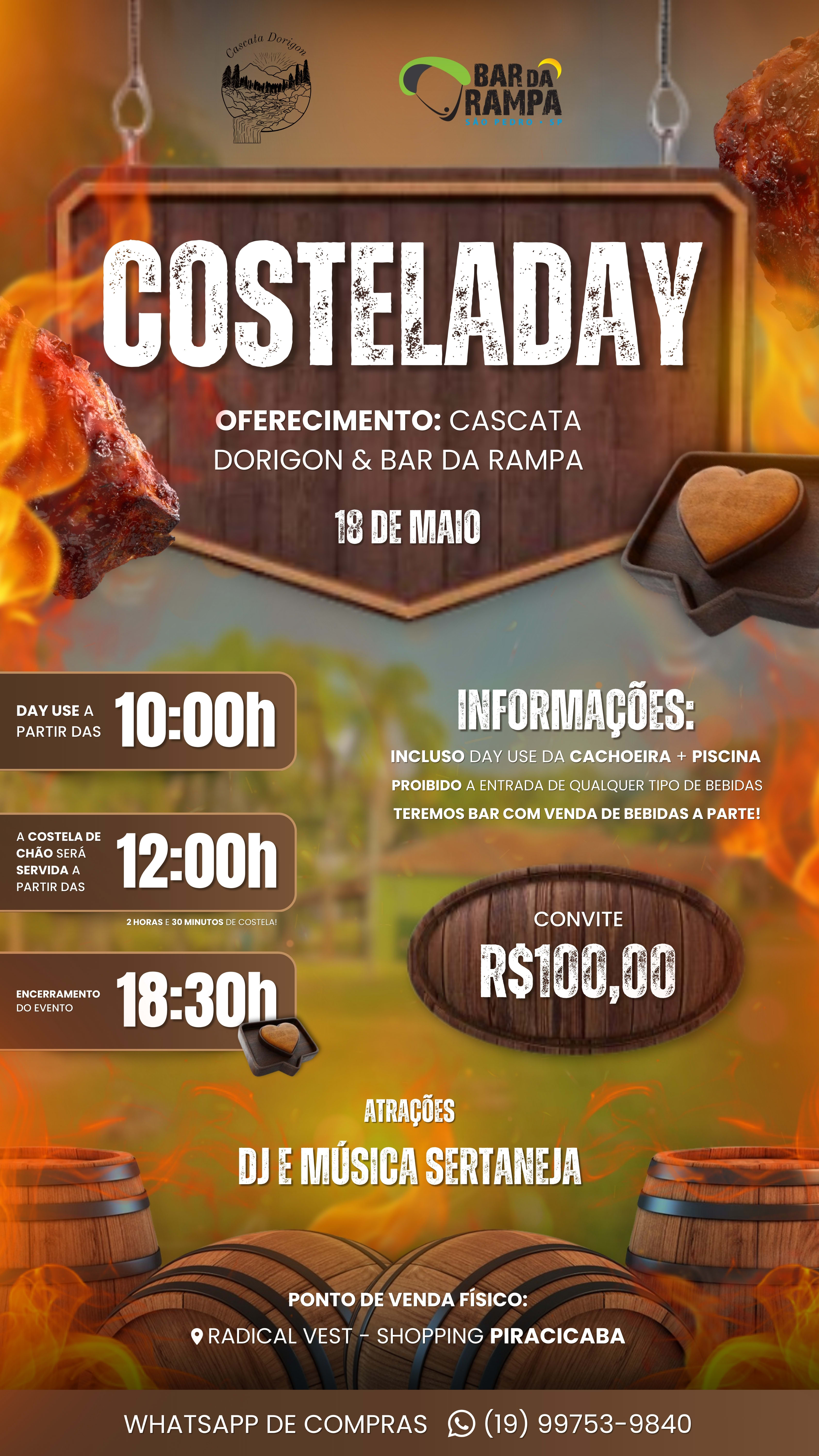 Dia 18/05/2025 day use com costela de chão com fraldinha e varal de linguiça e frango.