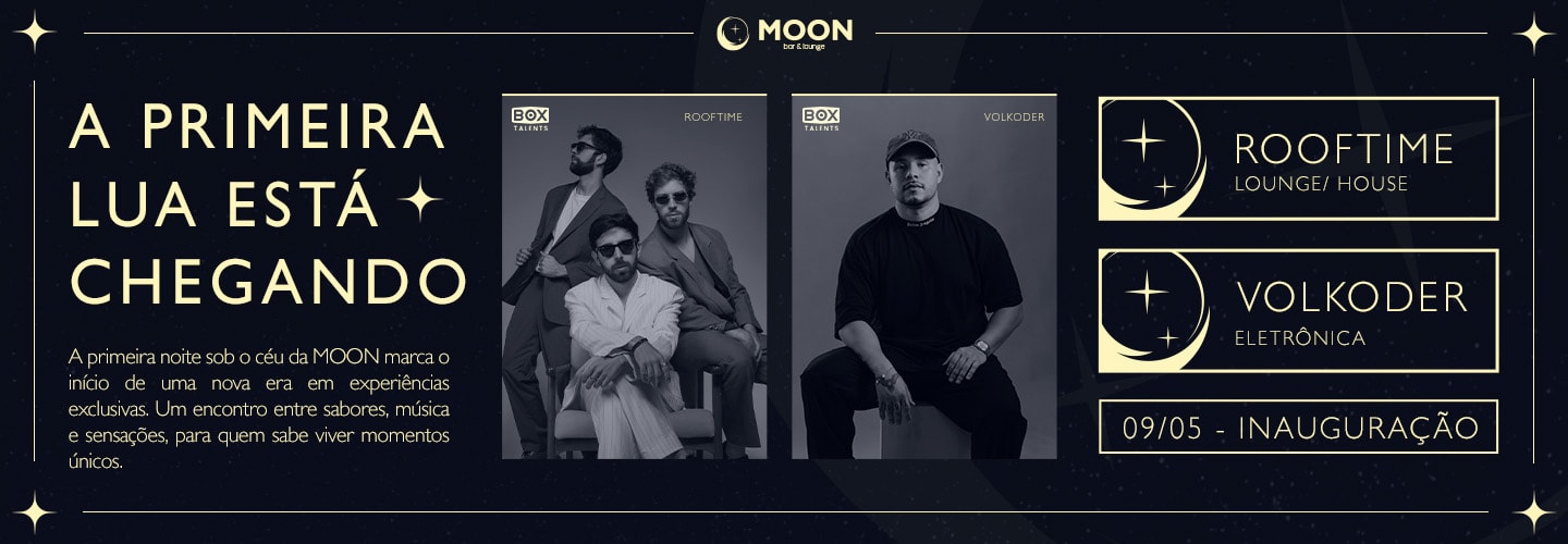 No dia 09 de maio, você está convidado para viver a estreia da Moon – uma casa conceito A, criada para ser muito mais que um espaço: uma experiência sensorial completa, onde gastronomia de alto nível, mixologia autoral e uma balada envolvente se encontram em perfeita harmonia.