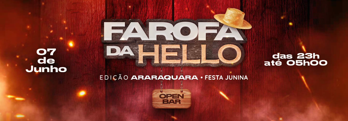 Pela primeira vez em Araraquara, a Farofa da Hello chega com tudo pra entregar 6 horas de pura diversão! Uma festa única, com um line-up incrível e uma atração surpresa que vai fazer geral surtar! 👀🔥