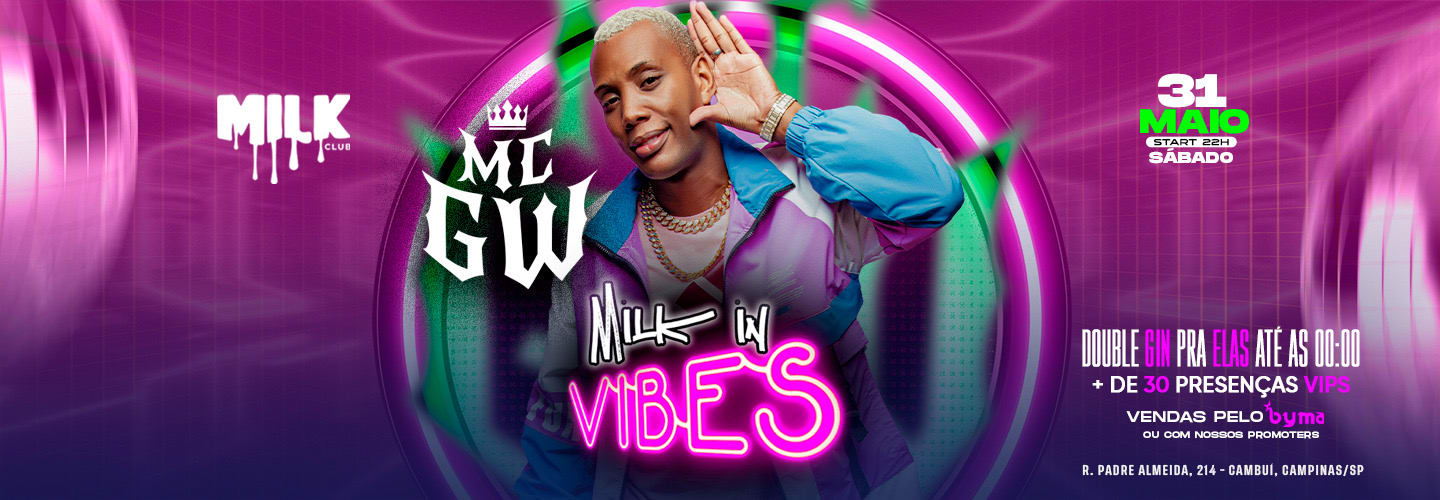 SÁBADO é dia de “MILK IN VIBES”, para nossa noite ficar ainda melhor teremos”MC GW” + promoções.