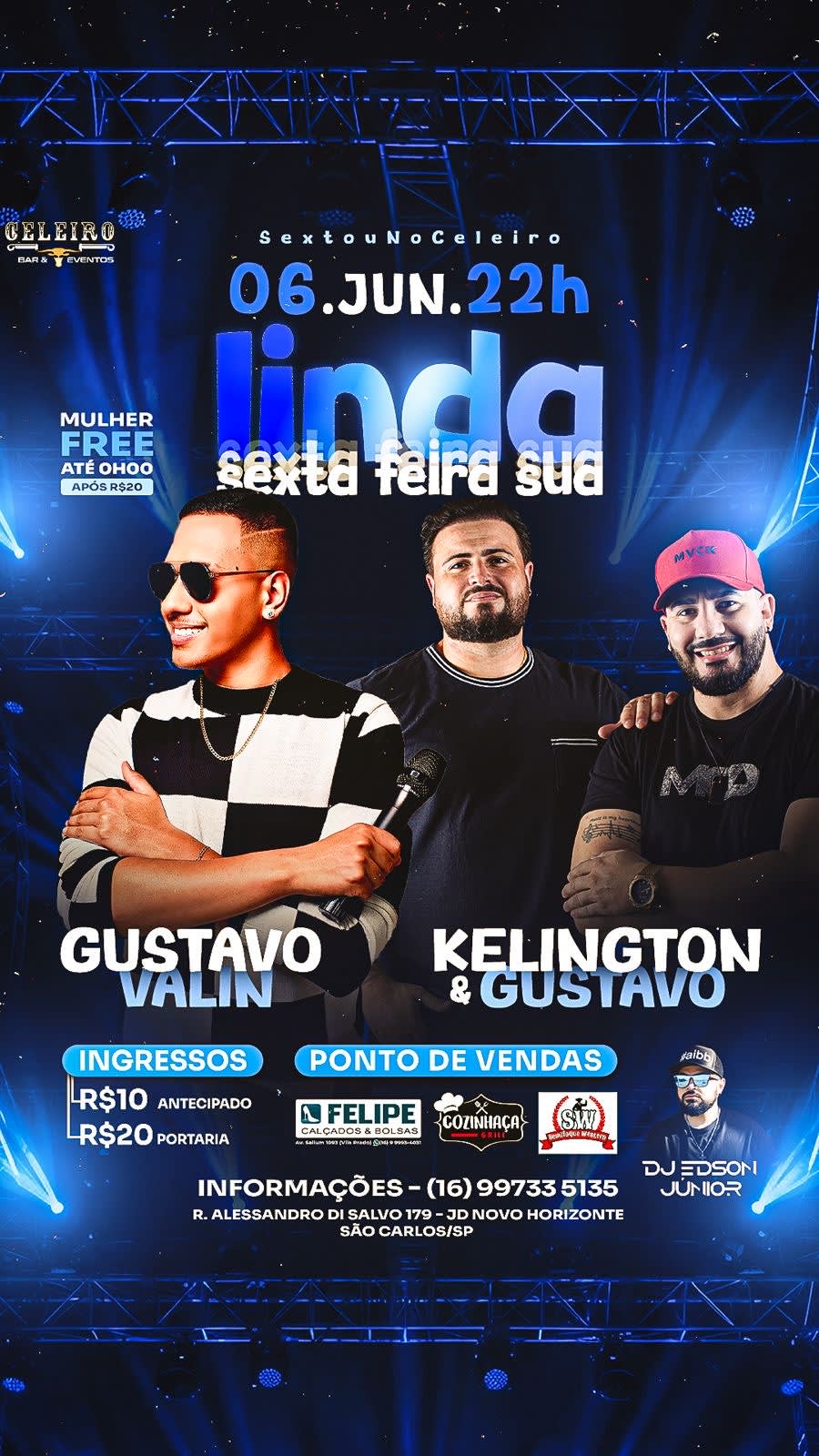 🔥 Vem curtir a Sexta-feira Sua Linda com Gustavo Valin, kelington e Gustavo e DJ Edson Junior!