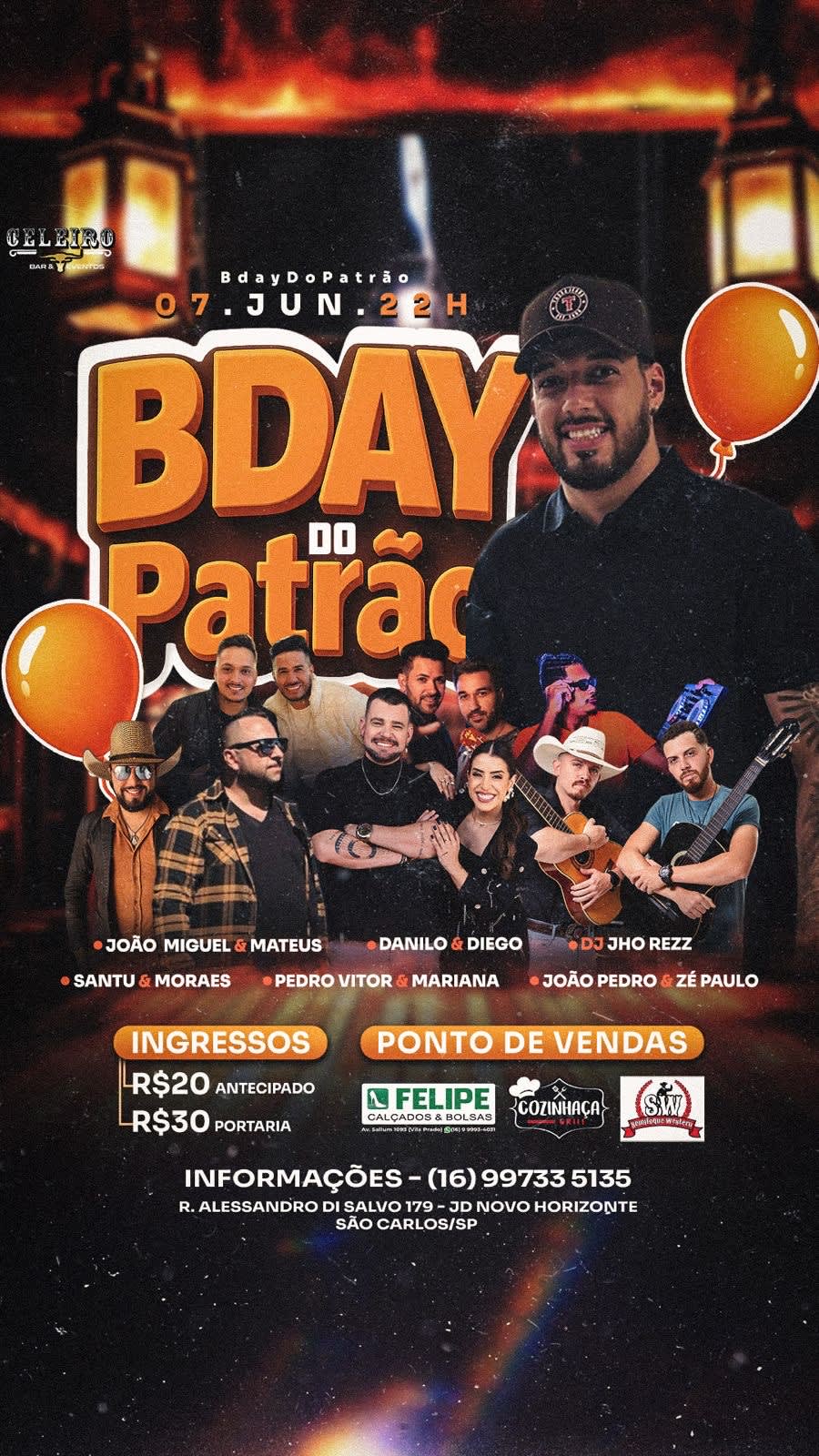 Sábado, 07 de junho- 22h, a festa vai ser braba com um time de peso no palco: